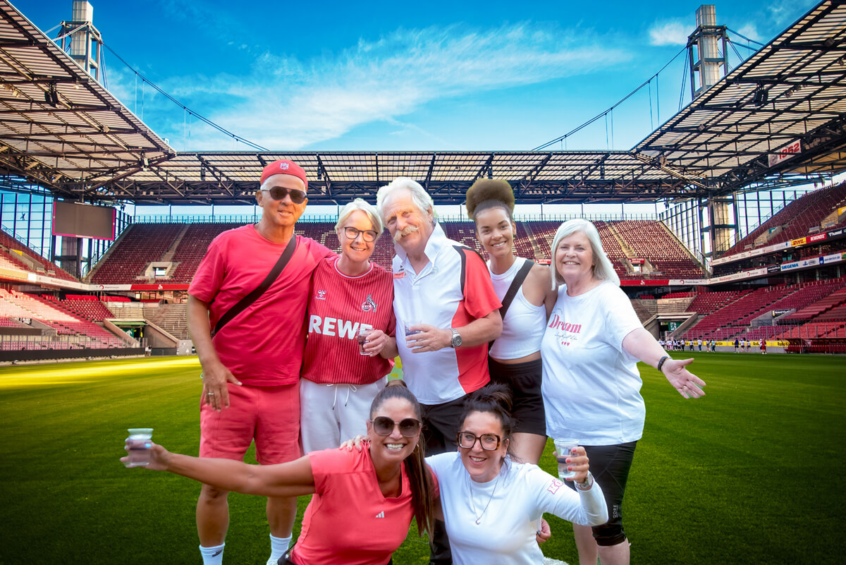 Nach dem Auftritt nahm LivinGospel spontan am sogenannten 5 km POWER WALK mit Henning teil. Erfreut zeigte sich Oliver Gritz, der Vorsitzende des Vereins und ehem. Finanzvorstand der DHL über den Teilnehmerrekord mit 2000 Sportbegeisterten. – Es ging vorbei am „heiligen Rasen“ durch das Rhein-Energie Stadion und anschließend über die Jahn Wiesen durch den schattigen Stadtwald.